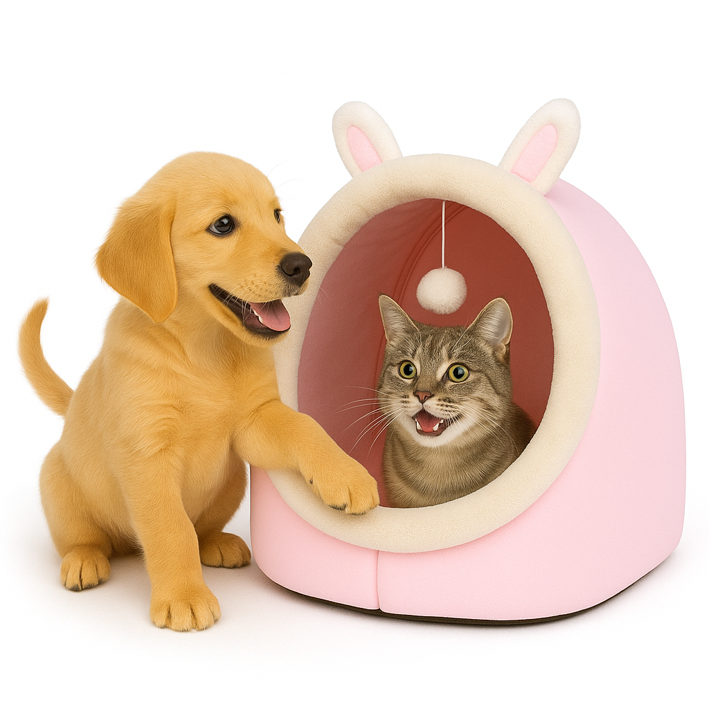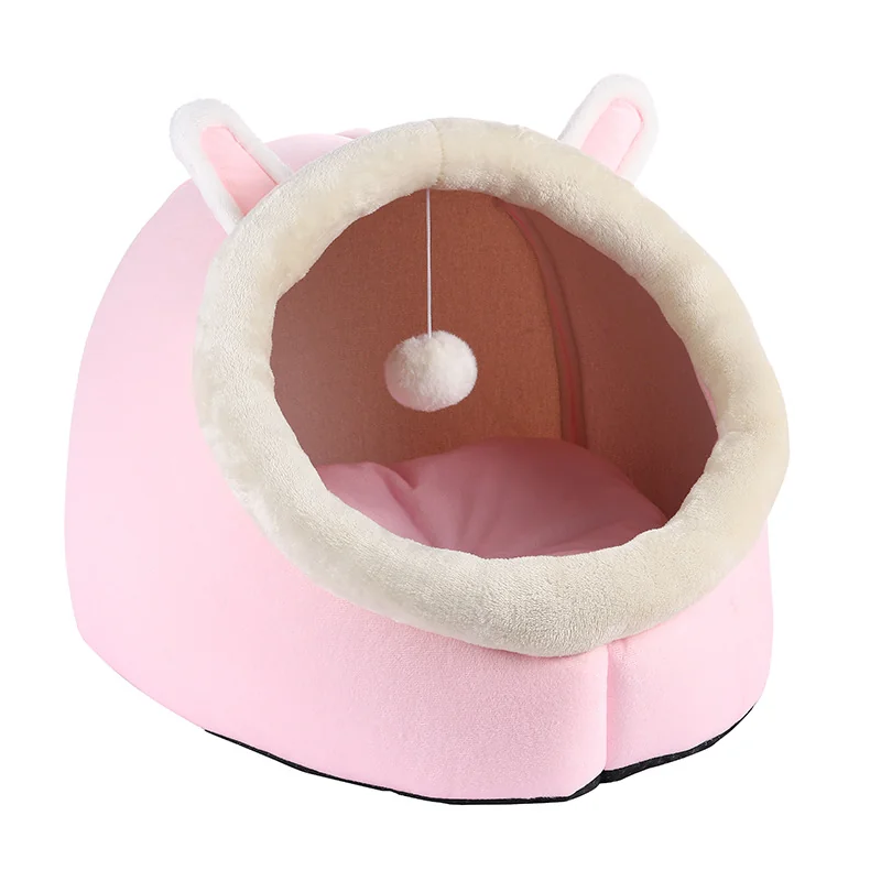 Cama semicerrada 4 estaciones con pelota colgante Para gatos y perros chicos