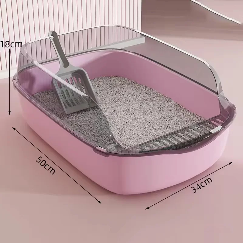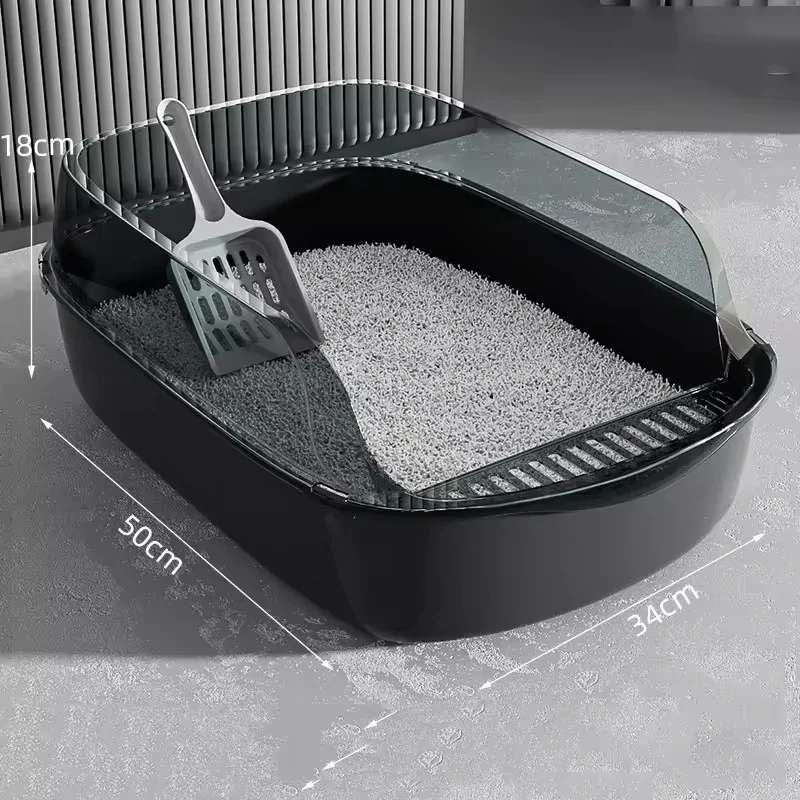 Caja semicerrada para gatos. Bordes altos y diseño anti salpicaduras.